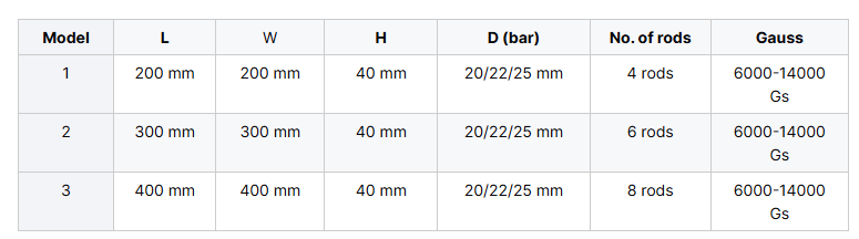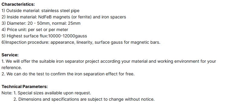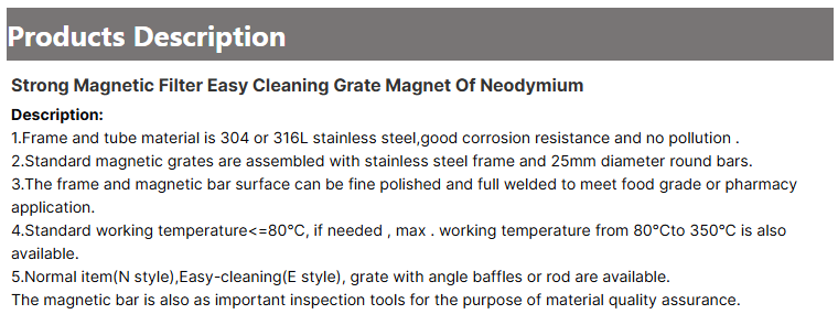 High gauss magnetic bars (14000GS) for food safety