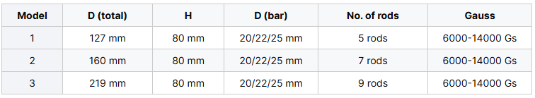 Custom magnetic bar length/rod quantity